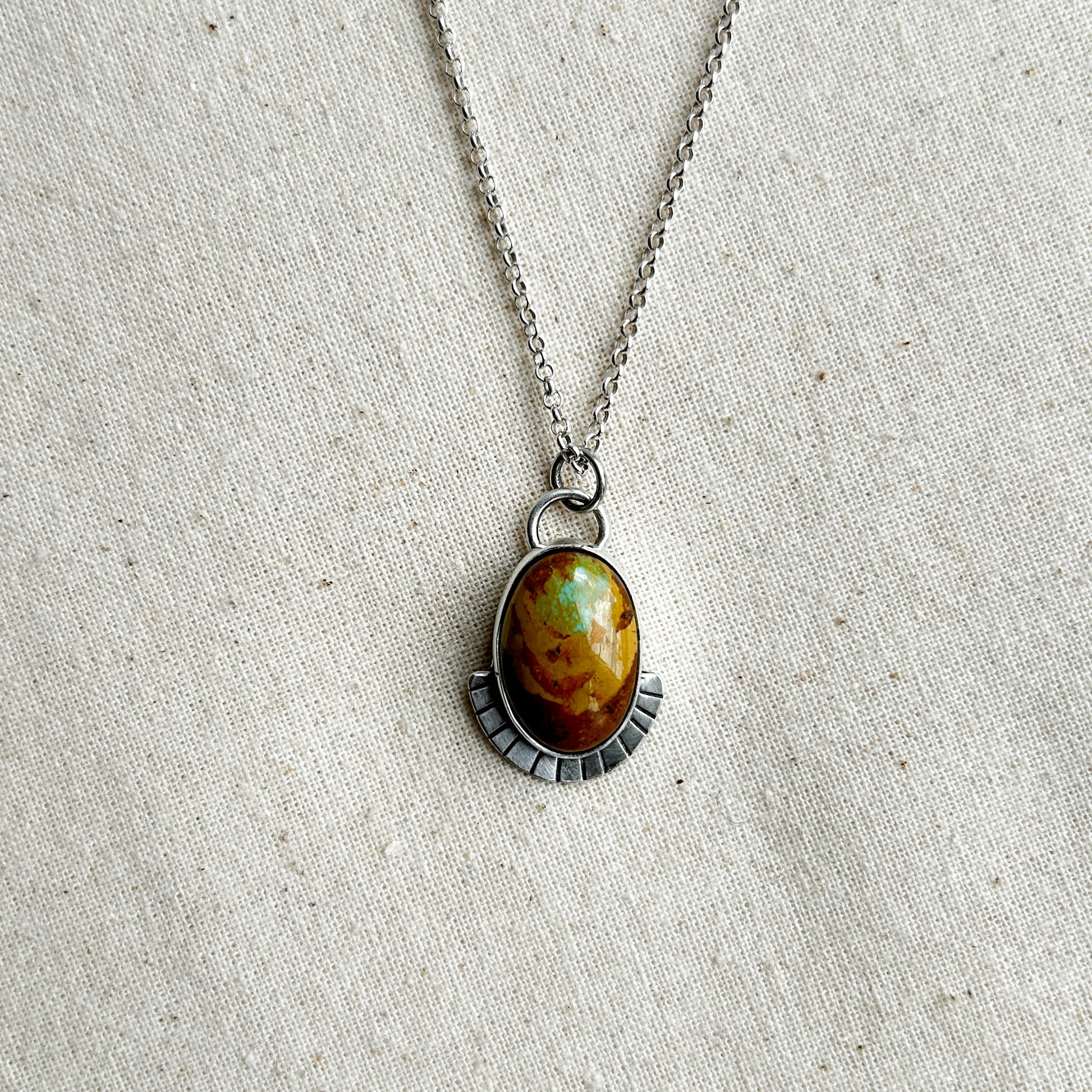 Not your average turquoise pendant. This one-of-a-kind Royston turquoise gemstone features earthly brown hues and just a hint of green.